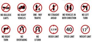 - No Entry: A red circle with a white bar in the middle, indicating a restricted area.